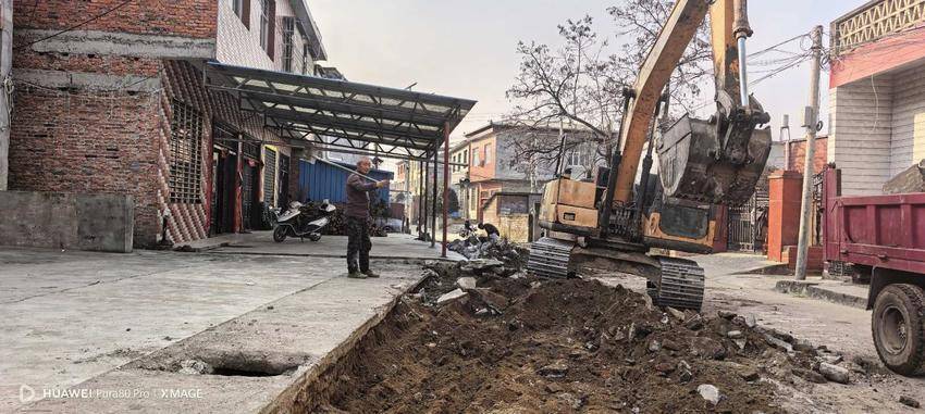 这条承载着当地30年生活记忆的老街,曾是铁山社区最“闹心”的路段。原为3.5米宽的老旧水泥路,年久失修、坑洼不平,雨天积水严重;空中电线杂乱缠绕,既影响镇容美观又存在安全隐患,成了制约小城镇品质提升的“堵点”。